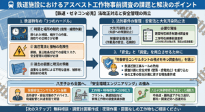 アスベストの事前調査は、単に「現場を見て回る」だけではありません。法的に定められた手順を踏まないと、不適切な調査とみなされ、後の工事で飛散事故や作業員のばく露事故につながるリスクがあります。